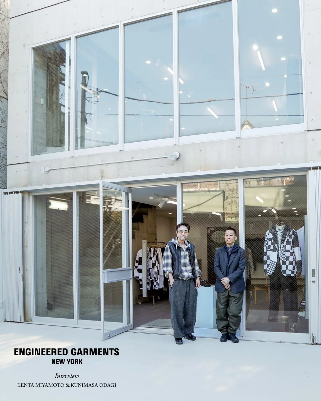 In this renewed space, we spoke with Engineered Garments Director Kenta Miyamoto and Designer Kunimasa Odagi, both visiting from New York. They share their thoughts on the new store and the ideas behind the latest collection.
